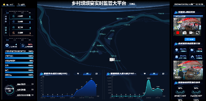 “坝坝宴”现场,就餐区桌椅摆放划一,村平易近们围桌打牌期待开席;烹调区不锈钢厨具、炉灶、操做台等设备一应俱全,穿戴整洁的厨师们分区制做菜品,一旁还有摄像头及时抓拍违规数据,上传聪慧“坝坝宴”监管平台,而挪动聪慧餐车上的留样柜、冰柜等设备则对菜品进行规范保留和留样,确保消弭从储存、制做到加工、留样全过程食物平安现患。