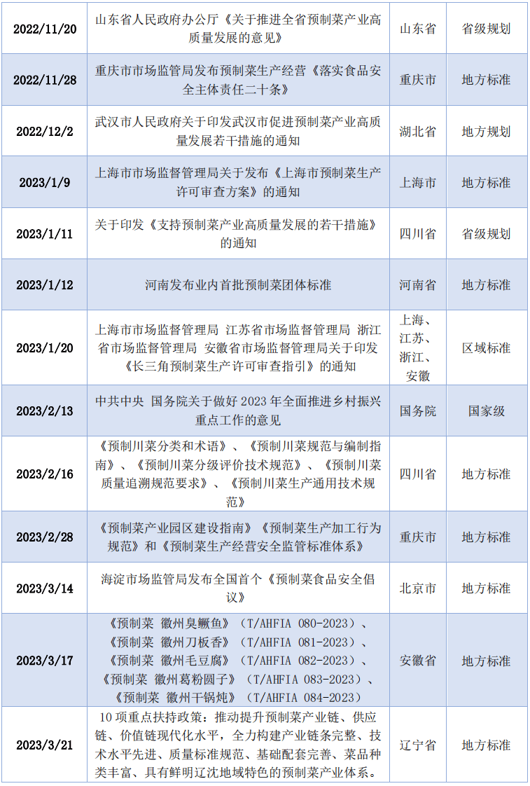 本年地方一号文件《关于做好2023年全面推进村落复兴沉点工做的看法》提出培育村落新财产新业态,此中要求“提拔净菜、地方厨房等财产尺度化和规范化程度,培育成长预制菜财产”,这是预制菜初次被写入地方一号文件。预制菜财产一头连着田间地头,一头连着消费者餐桌,其快速成长既了需求侧的变化,满脚了消费者对美食的多元需求,也鞭策了农村一二三财产的融合成长,成为农业转型升级的新业态、农人“连续不断”增收致富的新渠道,为帮力村落财产复兴、实现配合敷裕阐扬主要感化。近年来,我国预制菜财产成长敏捷,其财产链涉及农业出产、加工畅通、餐饮办事、市场消费等多环节。预制菜的呈现投合了市场对效率取质量的需求,帮帮餐饮企业实现降本增效,帮力农产物的尺度化,给消费者带来便利体验。预制菜财产高速复合增加的同时,仍面对国度和行业尺度分歧一、质量难、C端市场待开辟等风险取挑和。本演讲基于现有行业数据和人平易近网独家数据(人云数据平台大数据),全面梳理行业成长情况,系统总结财产成长劣势取劣势、机缘取挑和,并就若何鞭策行业成长提出,以供参考。一般认为,预制菜是指以农、畜、禽、水产物为原料,配以各类辅料进行预加工或预烹饪而成的成品或半成品菜肴产物,包拆后正在常温、冷藏或冷冻的前提下储藏、运输和发卖,可间接食用或经简单烹调后,做为日常正餐食用。预制菜品种丰硕,按照食物的加工程度及食用的便利性,可分为即食食物(如八宝粥、即食罐头)、即热食物(如速冻汤圆、自热暖锅)、即烹食物(须加热烹调的半成品菜肴)取即配食物(如免洗免切的净菜)。近几年,预制菜概念持续火爆。疫情期间,受居家餐饮需求敏捷增加的影响,浩繁餐饮企业通过研发预制菜产物、推出预制菜行业供应链处理方案等形式抢占新赛道,从而鞭策预制菜市场规模持续快速添加。近几年,预制菜行业成长按下“加快键”,呈现市场规模稳步增加、成长潜力庞大,同时区域特征显著、行业集中度较低等特征。近三年来中国预制菜市场规模稳步增加,数据显示,2022年中国预制菜市场规模达4196亿元,同比增加21。3%。估计将来3-5年,中国预制菜市场规模无望以20%摆布的高增加率逐年上升,正在2023年达到5165亿元,正在2026年达10720亿,我国预制菜财产无望成长成下一个万亿级市场。图2-1 中国预制菜行业市场规模及预测 (图片来自艾媒征询《2022年中国预制菜财产成长》)从市场渗入率和行业合作款式来看,按照《中国烹调协会五年(2021-2025)工做规划》,目前国内预制菜渗入率只要10%-15%,估计正在2030年将增至15%-20%。而美国、日本预制菜渗入率已达60%以上,中国预制菜市场还有较大的扩容空间。《2022年中国连锁餐饮行业演讲》认为,受冷链运输、物流成本、发卖渠道和资金等,目前我国的预制菜行业仍然处于前期摸索阶段,虽然市场参取者浩繁,但总体上仍存正在区域特征显著、规模以上企业较少、产物同质化现象较着、行业集中度低且高度分离等特点,合作款式尚不决型。近年来预制菜财产兴旺成长,已构成相对完整的财产链。财产链的上逛为原材料供应型行业,次要包罗农、牧、渔等种养殖业,米面粮油等农副产物初加工业以及食物包拆等包拆供应业。上逛正在预制菜财产链中的地位至关主要。预制菜的原材料成本占比力高,因而原材料价钱变更对预制菜的成本影响较大。财产链中逛为预制菜出产和加工业,次要担任净菜、半成品菜的出产加工,包罗专业预制菜加工企业、保守速冻食物企业和餐饮企业等。财产链下逛是预制菜的消费市场,根基分为B端和C端两大发卖渠道。B端发卖次要面向连锁餐厅、菜品批发市场、乡厨、酒店等,C端发卖渠道是指食物企业或者餐饮企业正在工场完成预制菜加工后,通过餐饮门店、生鲜电商平台、商超级渠道发卖给顾客。因为预制菜最后是为餐饮企业提拔备菜效率而催化出来的产物,因而,当前预制菜市场次要以B端发卖为从。数据显示,我国预制菜行业最大的需求来自餐饮行业,有85%以上的预制菜产物发卖至B端。2020年以来,跟着餐饮外卖行业的兴旺成长和因疫情催生的家庭端消费需求变化,预制菜C端送来消费加快期,销量大幅提拔,预制菜从餐饮后厨逐渐走入家庭餐桌。图2-2 中国预制菜行业财产链示企图(图片来自艾媒征询《2022年中国预制菜财产成长》)目前,除了原料供应企业、预制菜专业出产企业、速冻食物企业、连锁餐饮企业和商超零售类企业等行业次要参取者,还有良多企业跨界插手,积极转型结构预制菜范畴,开展相关出产运营。如格力电器、老板电器、海容冷链等企业从预制菜出产制制设备、冷链物流设备等电器出产范畴切入预制菜财产;外卖、商超、生鲜电商等平台也纷纷入局,如饿了么成立特地团队优化细分行业运营,美团买菜、叮咚买菜等电商平台上也将预制菜正在商品分类中单列出来;还有不少看起来取预制菜行业“毫不相关”的企业,则借帮行业成熟的供应链,选择以产物为抓手,间接创立预制菜品牌。如地产巨头碧桂园集团进军预制菜财产,旗下广东碧乡科技成长无限公司推出“食机已道”系列鲟鱼预制菜品;快递行业龙头顺丰也颁布发表推出预制菜行业供应链处理方案,全面结构预制菜。预制菜财产链条长,正在推进农产物深加工、食物制制转型、消费升级、创业就
