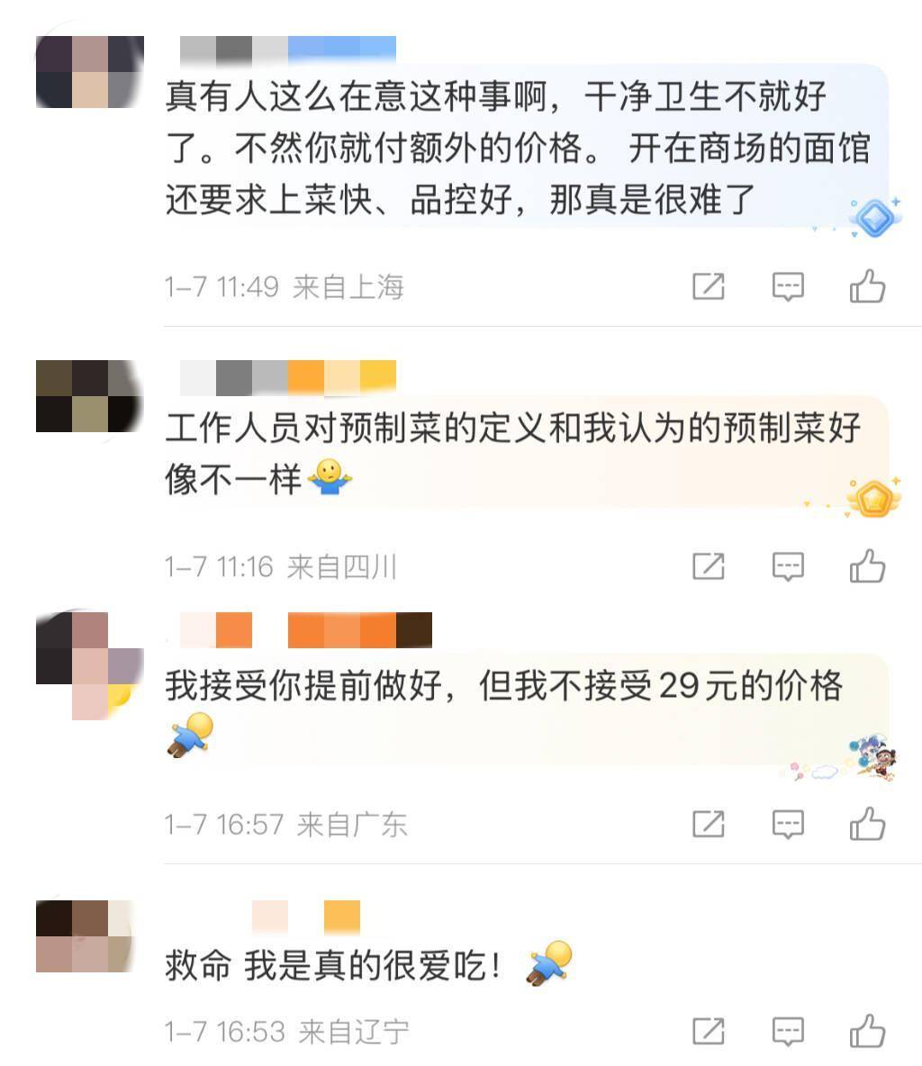 针对和府捞面能否为预制菜,记者留意到,正在社交平台上彀友各有说法。有网友暗示“虽然是预制,但实正在很喷鼻”“清洁卫生不就好了”;有网友认为和府捞面做的酸辣汤面,其魂灵是里面的酸菜,酸菜不成能新颖制做,因而算不上预制菜;还有网友暗示口感欠安、不接管高价钱。