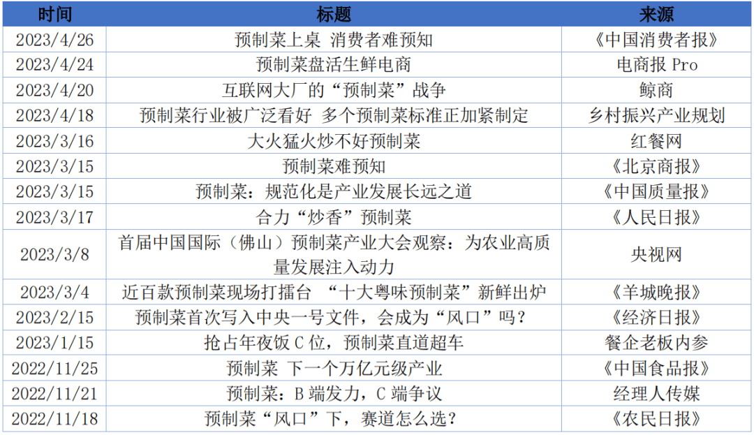 本年地方一号文件《关于做好2023年全面推进村落复兴沉点工做的看法》提出培育村落新财产新业态,此中要求“提拔净菜、地方厨房等财产尺度化和规范化程度,培育成长预制菜财产”,这是预制菜初次被写入地方一号文件。预制菜财产一头连着田间地头,一头连着消费者餐桌,其快速成长既了需求侧的变化,满脚了消费者对美食的多元需求,也鞭策了农村一二三财产的融合成长,成为农业转型升级的新业态、农人“连续不断”增收致富的新渠道,为帮力村落财产复兴、实现配合敷裕阐扬主要感化。近年来,我国预制菜财产成长敏捷,其财产链涉及农业出产、加工畅通、餐饮办事、市场消费等多环节。预制菜的呈现投合了市场对效率取质量的需求,帮帮餐饮企业实现降本增效,帮力农产物的尺度化,给消费者带来便利体验。预制菜财产高速复合增加的同时,仍面对国度和行业尺度分歧一、质量难、C端市场待开辟等风险取挑和。本演讲基于现有行业数据和人平易近网独家数据(人云数据平台大数据),全面梳理行业成长情况,系统总结财产成长劣势取劣势、机缘取挑和,并就若何鞭策行业成长提出,以供参考。一般认为,预制菜是指以农、畜、禽、水产物为原料,配以各类辅料进行预加工或预烹饪而成的成品或半成品菜肴产物,包拆后正在常温、冷藏或冷冻的前提下储藏、运输和发卖,可间接食用或经简单烹调后,做为日常正餐食用。预制菜品种丰硕,按照食物的加工程度及食用的便利性,可分为即食食物(如八宝粥、即食罐头)、即热食物(如速冻汤圆、自热暖锅)、即烹食物(须加热烹调的半成品菜肴)取即配食物(如免洗免切的净菜)。近几年,预制菜概念持续火爆。疫情期间,受居家餐饮需求敏捷增加的影响,浩繁餐饮企业通过研发预制菜产物、推出预制菜行业供应链处理方案等形式抢占新赛道,从而鞭策预制菜市场规模持续快速添加。近几年,预制菜行业成长按下“加快键”,呈现市场规模稳步增加、成长潜力庞大,同时区域特征显著、行业集中度较低等特征。近三年来中国预制菜市场规模稳步增加,数据显示,2022年中国预制菜市场规模达4196亿元,同比增加21。3%。估计将来3-5年,中国预制菜市场规模无望以20%摆布的高增加率逐年上升,正在2023年达到5165亿元,正在2026年达10720亿,我国预制菜财产无望成长成下一个万亿级市场。图2-1 中国预制菜行业市场规模及预测 (图片来自艾媒征询《2022年中国预制菜财产成长》)从市场渗入率和行业合作款式来看,按照《中国烹调协会五年(2021-2025)工做规划》,目前国内预制菜渗入率只要10%-15%,估计正在2030年将增至15%-20%。而美国、日本预制菜渗入率已达60%以上,中国预制菜市场还有较大的扩容空间。《2022年中国连锁餐饮行业演讲》认为,受冷链运输、物流成本、发卖渠道和资金等,目前我国的预制菜行业仍然处于前期摸索阶段,虽然市场参取者浩繁,但总体上仍存正在区域特征显著、规模以上企业较少、产物同质化现象较着、行业集中度低且高度分离等特点,合作款式尚不决型。近年来预制菜财产兴旺成长,已构成相对完整的财产链。财产链的上逛为原材料供应型行业,次要包罗农、牧、渔等种养殖业,米面粮油等农副产物初加工业以及食物包拆等包拆供应业。上逛正在预制菜财产链中的地位至关主要。预制菜的原材料成本占比力高,因而原材料价钱变更对预制菜的成本影响较大。财产链中逛为预制菜出产和加工业,次要担任净菜、半成品菜的出产加工,包罗专业预制菜加工企业、保守速冻食物企业和餐饮企业等。财产链下逛是预制菜的消费市场,根基分为B端和C端两大发卖渠道。B端发卖次要面向连锁餐厅、菜品批发市场、乡厨、酒店等,C端发卖渠道是指食物企业或者餐饮企业正在工场完成预制菜加工后,通过餐饮门店、生鲜电商平台、商超级渠道发卖给顾客。因为预制菜最后是为餐饮企业提拔备菜效率而催化出来的产物,因而,当前预制菜市场次要以B端发卖为从。数据显示,我国预制菜行业最大的需求来自餐饮行业,有85%以上的预制菜产物发卖至B端。2020年以来,跟着餐饮外卖行业的兴旺成长和因疫情催生的家庭端消费需求变化,预制菜C端送来消费加快期,销量大幅提拔,预制菜从餐饮后厨逐渐走入家庭餐桌。图2-2 中国预制菜行业财产链示企图(图片来自艾媒征询《2022年中国预制菜财产成长》)目前,除了原料供应企业、预制菜专业出产企业、速冻食物企业、连锁餐饮企业和商超零售类企业等行业次要参取者,还有良多企业跨界插手,积极转型结构预制菜范畴,开展相关出产运营。如格力电器、老板电器、海容冷链等企业从预制菜出产制制设备、冷链物流设备等电器出产范畴切入预制菜财产;外卖、商超、生鲜电商等平台也纷纷入局,如饿了么成立特地团队优化细分行业运营,美团买菜、叮咚买菜等电商平台上也将预制菜正在商品分类中单列出来;还有不少看起来取预制菜行业“毫不相关”的企业,则借帮行业成熟的供应链,选择以产物为抓手,间接创立预制菜品牌。如地产巨头碧桂园集团进军预制菜财产,旗下广东碧乡科技成长无限公司推出“食机已道”系列鲟鱼预制菜品;快递行业龙头顺丰也颁布发表推出预制菜行业供应链处理方案,全面结构预制菜。预制菜财产链条长,正在推进农产物深加工、食物制制转型、消费升级、创业就